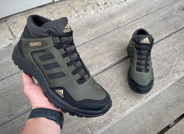 Чоловічі шкіряні зимові кросівки Adidas Код: А-1 хаки/зима